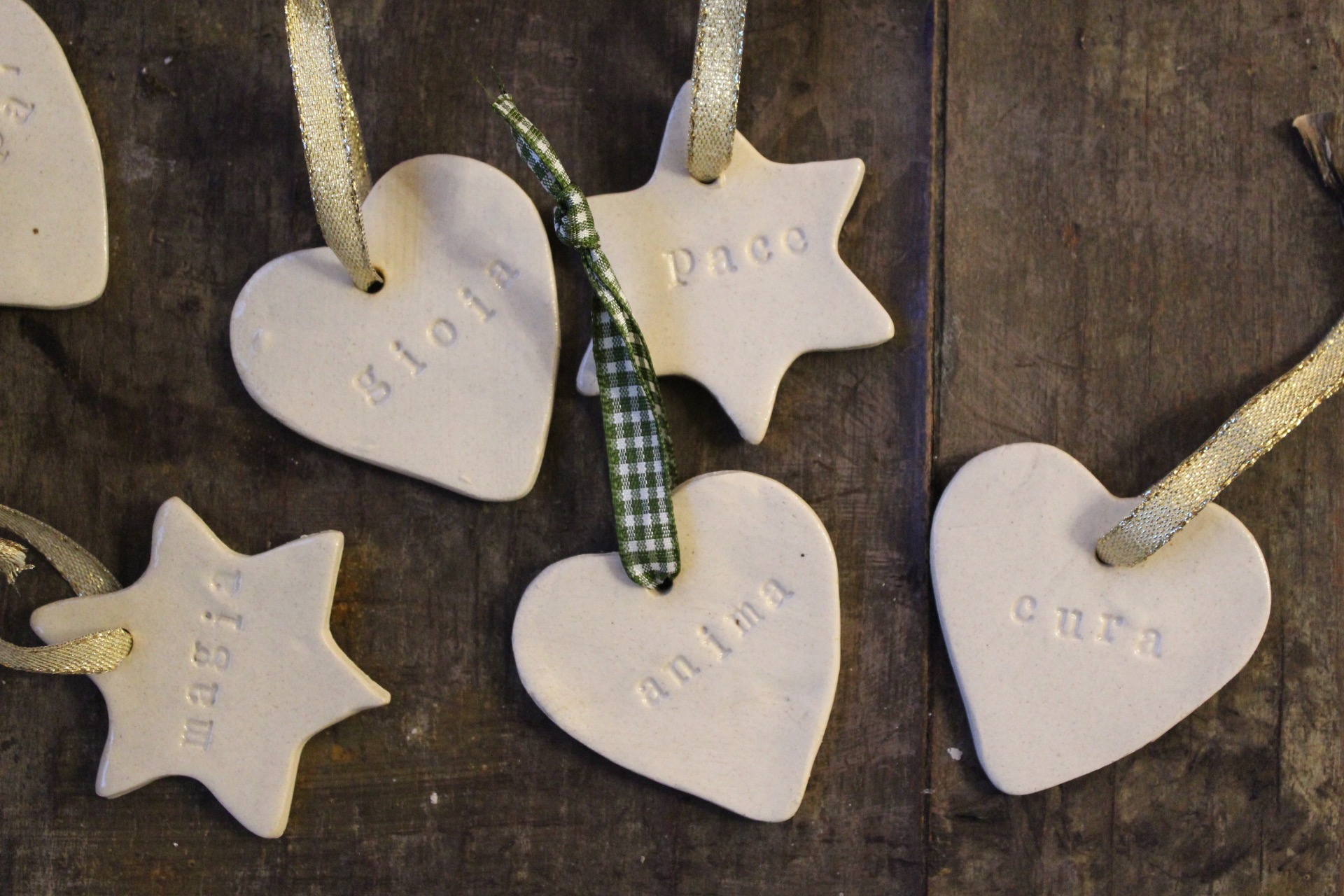 Arricchisci il tuo albero con un tocco autentico, oppure sorprendi la tua persona del cuore con questi charm in grès, piccoli talismani modellati a mano e impreziositi da parole speciali. Ogni pezzo custodisce un messaggio unico e un calore artigianale che rende ancora più preziosi i momenti da celebrare.