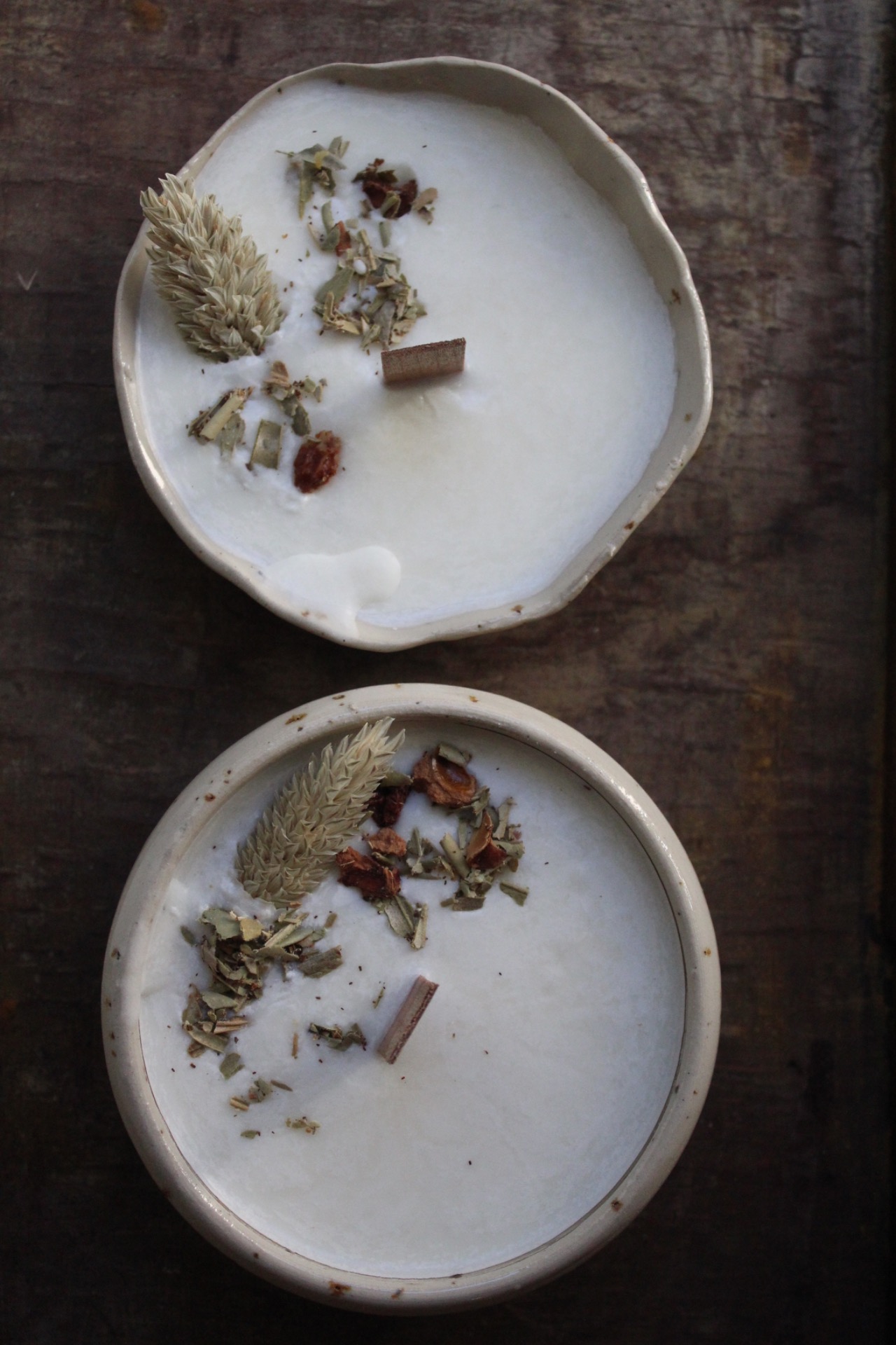 Candele da massaggio in grès con cera in soia naturale, 100% biologica e fiori secchi.